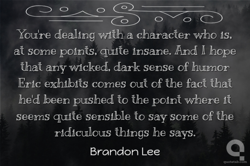 You're dealing with a character who is, at some points, quite insane. And I hope that any wicked, dark sense of humor Eric exhibits comes out of the fact that he'd been pushed to the point where it seems quite sensible to say some of the ridiculous things he says.