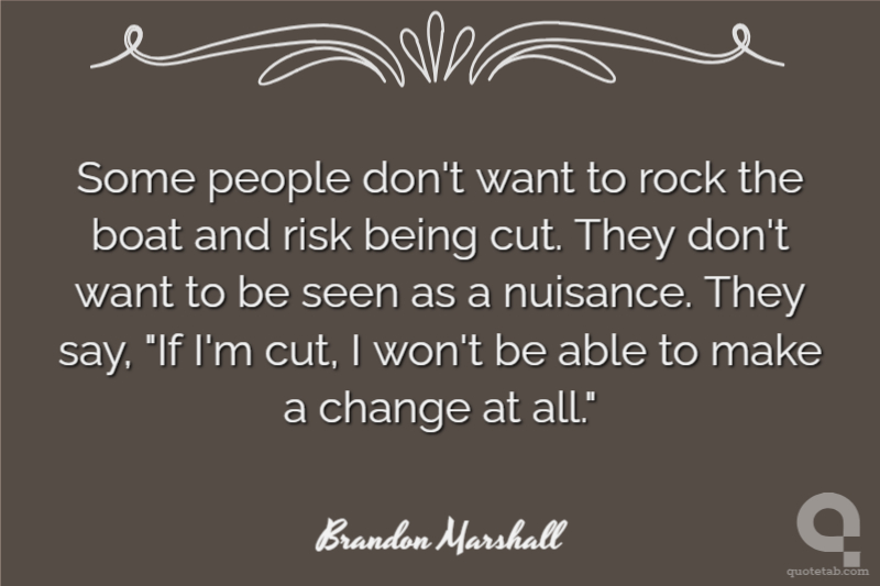 Some people don't want to rock the boat and risk being cut. They don't want to be seen as a nuisance. They say, "If I'm cut, I won't be able to make a change at all."