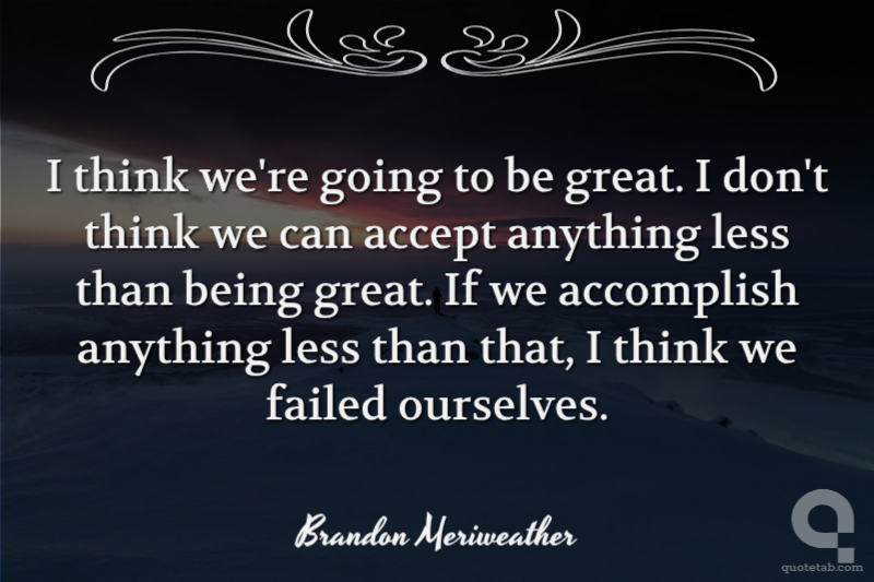 I think we're going to be great. I don't think we can accept anything less than being great. If we accomplish anything less than that, I think we failed ourselves.