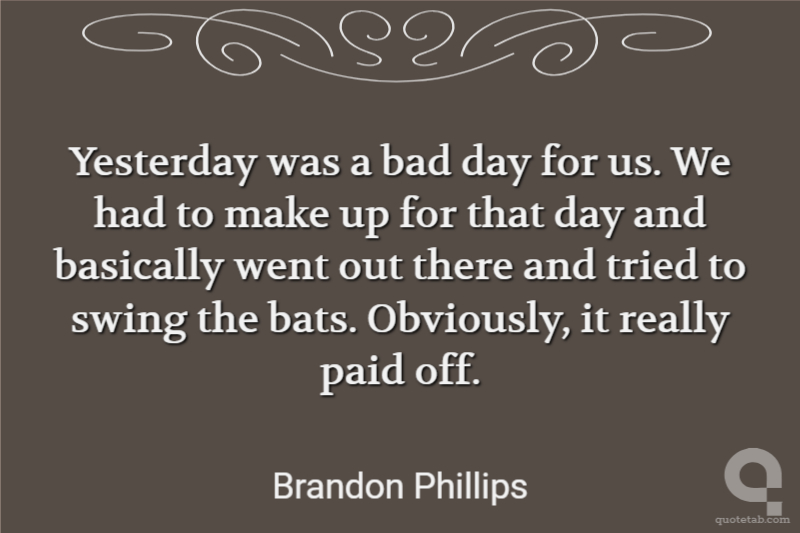 Yesterday was a bad day for us. We had to make up for that day and basically went out there and tried to swing the bats. Obviously, it really paid off.