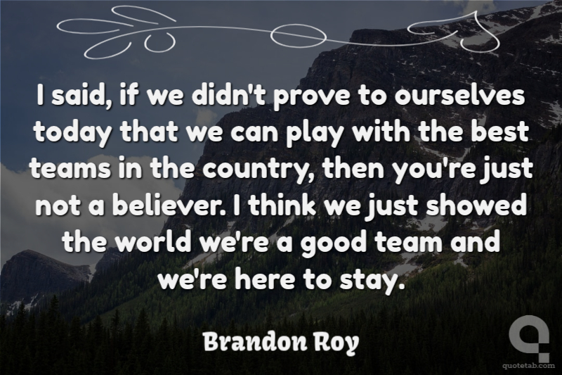 I said, if we didn't prove to ourselves today that we can play with the best teams in the country, then you're just not a believer. I think we just showed the world we're a good team and we're here to stay.