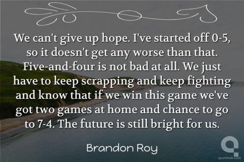 We can't give up hope. I've started off 0-5, so it doesn't get any worse than that. Five-and-four is not bad at all. We just have to keep scrapping and keep fighting and know that if we win this game we've got two games at home and chance to go to 7-4. The future is still bright for us.