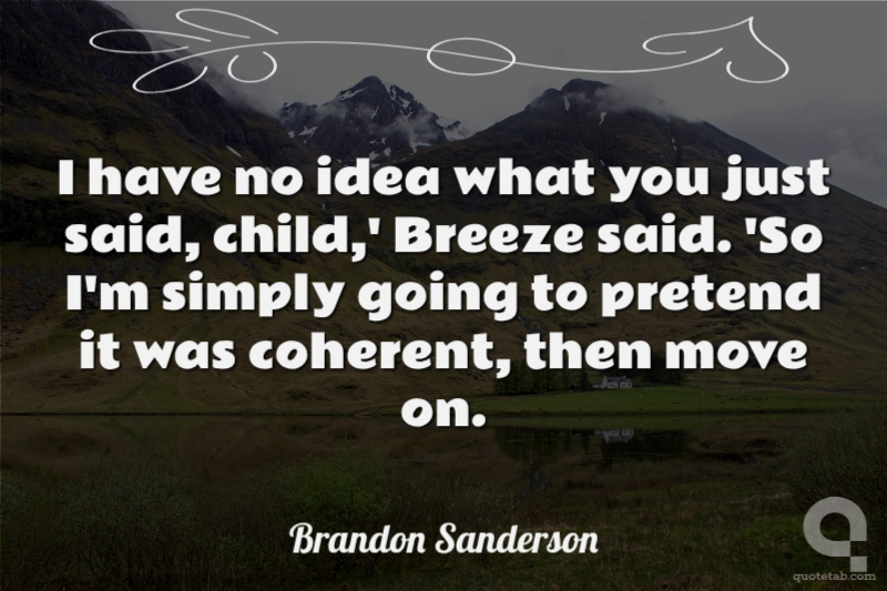 I have no idea what you just said, child,' Breeze said. 'So I'm simply going to pretend it was coherent, then move on.