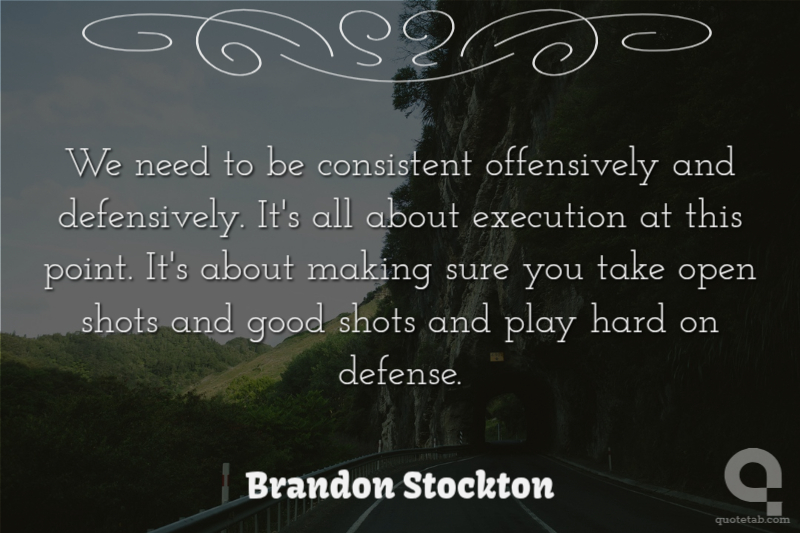 We need to be consistent offensively and defensively. It's all about execution at this point. It's about making sure you take open shots and good shots and play hard on defense.