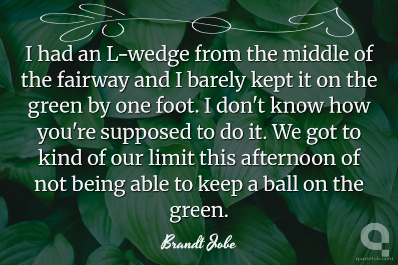 I had an L-wedge from the middle of the fairway and I barely kept it on the green by one foot. I don't know how you're supposed to do it. We got to kind of our limit this afternoon of not being able to keep a ball on the green.