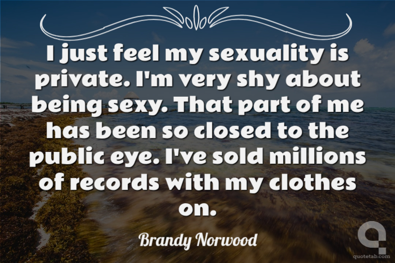 I just feel my sexuality is private. I'm very shy about being sexy. That part of me has been so closed to the public eye. I've sold millions of records with my clothes on.