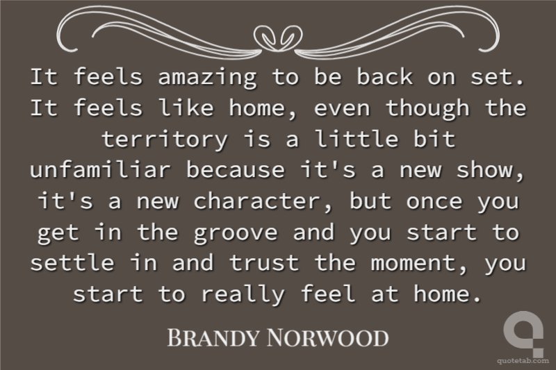 It feels amazing to be back on set. It feels like home, even though the territory is a little bit unfamiliar because it's a new show, it's a new character, but once you get in the groove and you start to settle in and trust the moment, you start to really feel at home.