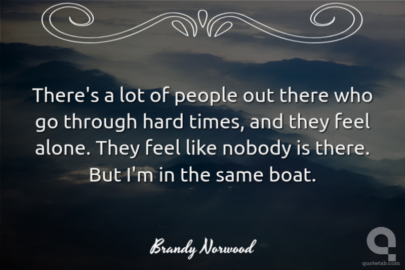 There's a lot of people out there who go through hard times, and they feel alone. They feel like nobody is there. But I'm in the same boat.
