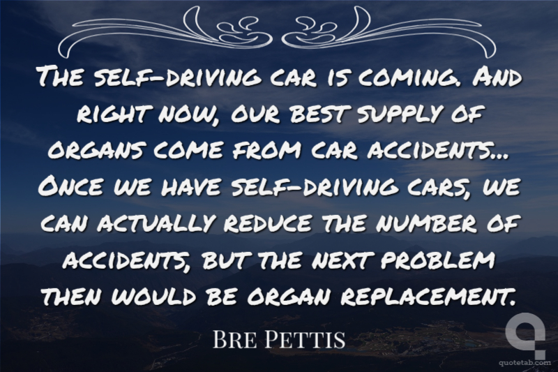 The self-driving car is coming. And right now, our best supply of organs come from car accidents... Once we have self-driving cars, we can actually reduce the number of accidents, but the next problem then would be organ replacement.