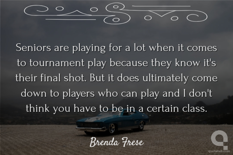 Seniors are playing for a lot when it comes to tournament play because they know it's their final shot. But it does ultimately come down to players who can play and I don't think you have to be in a certain class.