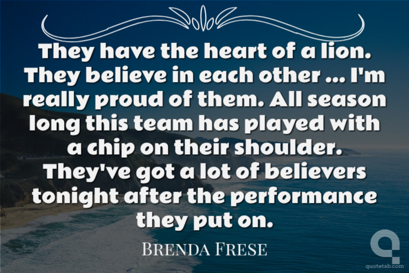 They have the heart of a lion. They believe in each other ... I'm really proud of them. All season long this team has played with a chip on their shoulder. They've got a lot of believers tonight after the performance they put on.