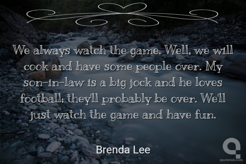 We always watch the game. Well, we will cook and have some people over. My son-in-law is a big jock and he loves football; they'll probably be over. We'll just watch the game and have fun.