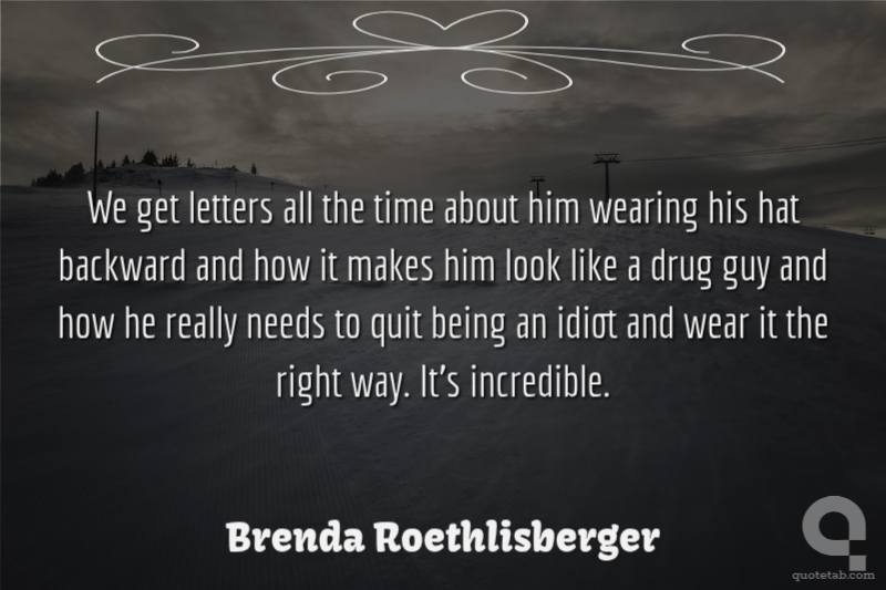 We get letters all the time about him wearing his hat backward and how it makes him look like a drug guy and how he really needs to quit being an idiot and wear it the right way. It's incredible.