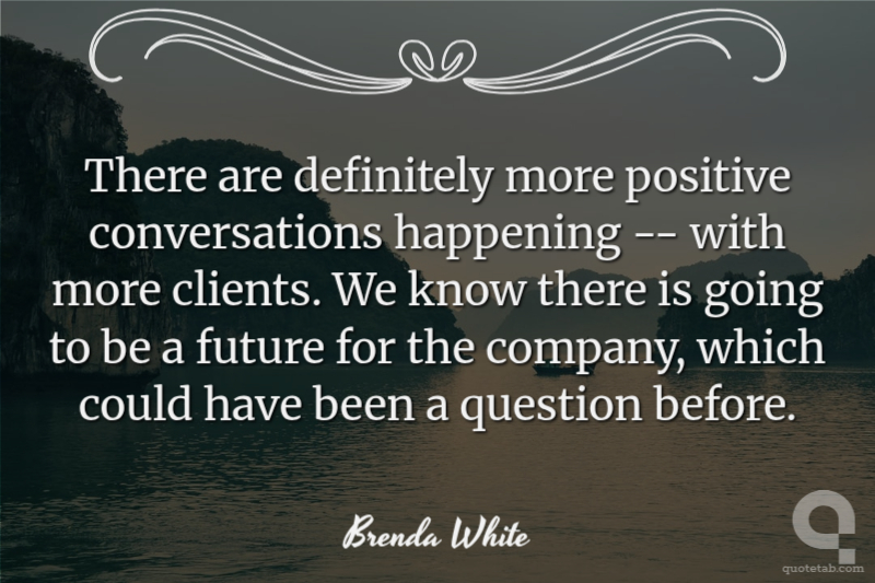 There are definitely more positive conversations happening -- with more clients. We know there is going to be a future for the company, which could have been a question before.