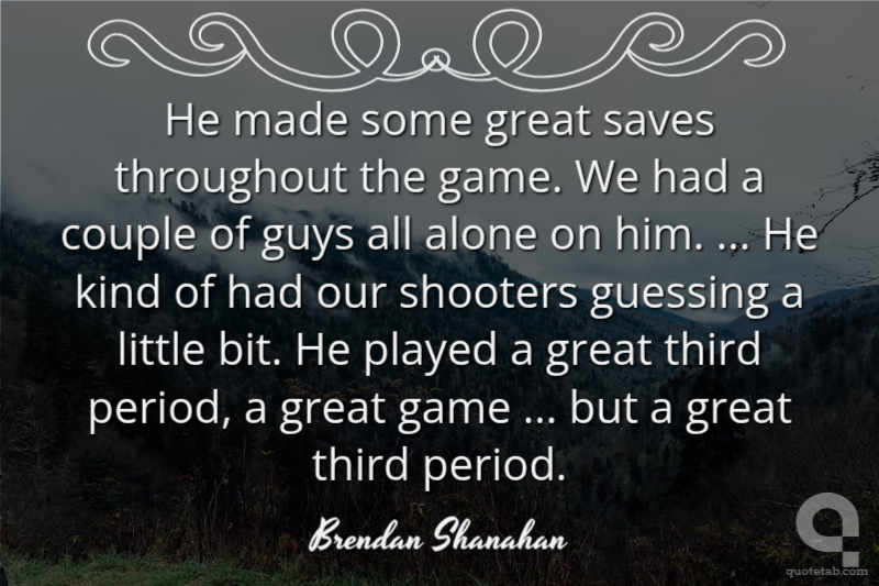 He made some great saves throughout the game. We had a couple of guys all alone on him. ... He kind of had our shooters guessing a little bit. He played a great third period, a great game ... but a great third period.
