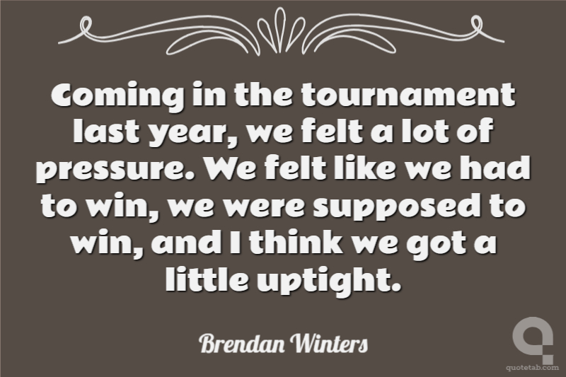Coming in the tournament last year, we felt a lot of pressure. We felt like we had to win, we were supposed to win, and I think we got a little uptight.