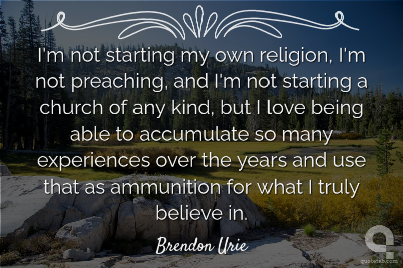 I'm not starting my own religion, I'm not preaching, and I'm not starting a church of any kind, but I love being able to accumulate so many experiences over the years and use that as ammunition for what I truly believe in.