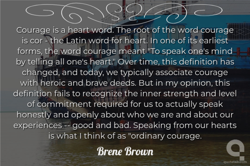 Courage, the original definition of courage, when it first came into the English language - it's from the Latin word cor, meaning heart - and the original definition was to tell the story of who you are with your whole heart.