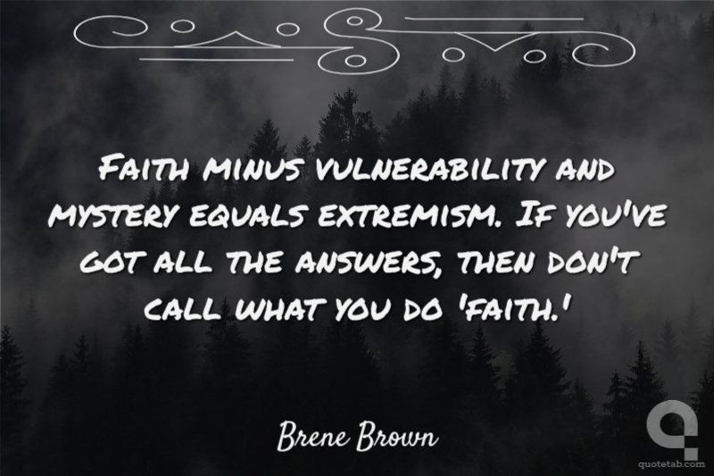 Faith minus vulnerability and mystery equals extremism. If you've got all the answers, then don't call what you do 'faith.'