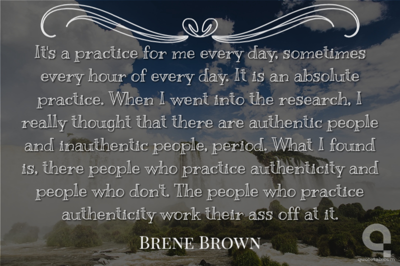 It's a practice for me every day, sometimes every hour of every day. It is an absolute practice. When I went into the research, I really thought that there are authentic people and inauthentic people, period. What I found is, there people who practice authenticity and people who don't. The people who practice authenticity work their ass off at it.