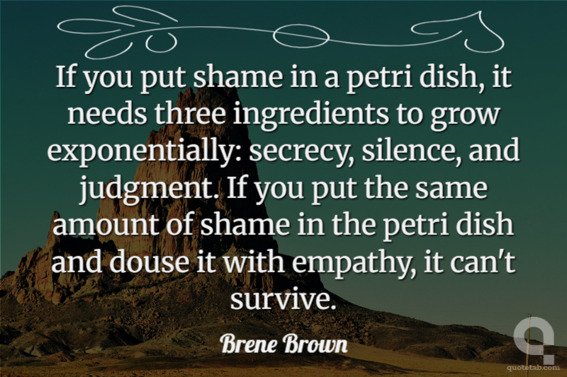 If you put shame in a petri dish, it needs three ingredients to grow exponentially: secrecy, silence, and judgment. If you put the same amount of shame in the petri dish and douse it with empathy, it can't survive.