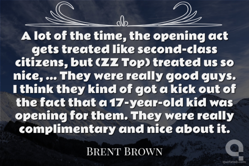 A lot of the time, the opening act gets treated like second-class citizens, but (ZZ Top) treated us so nice, ... They were really good guys. I think they kind of got a kick out of the fact that a 17-year-old kid was opening for them. They were really complimentary and nice about it.