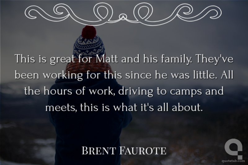 This is great for Matt and his family. They've been working for this since he was little. All the hours of work, driving to camps and meets, this is what it's all about.