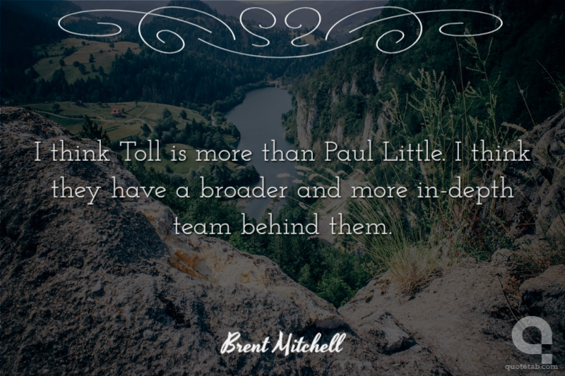 I think Toll is more than Paul Little. I think they have a broader and more in-depth team behind them.