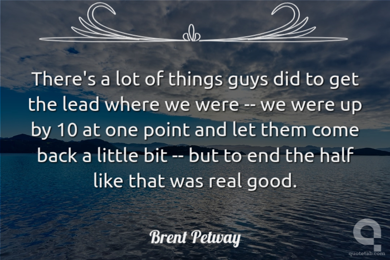 There's a lot of things guys did to get the lead where we were -- we were up by 10 at one point and let them come back a little bit -- but to end the half like that was real good.