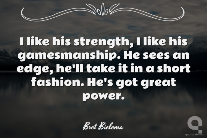 I like his strength, I like his gamesmanship. He sees an edge, he'll take it in a short fashion. He's got great power.
