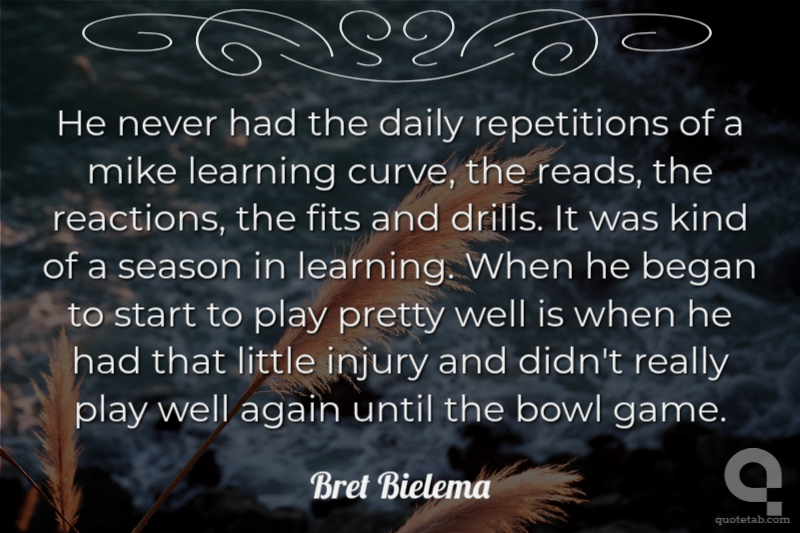 He never had the daily repetitions of a mike learning curve, the reads, the reactions, the fits and drills. It was kind of a season in learning. When he began to start to play pretty well is when he had that little injury and didn't really play well again until the bowl game.