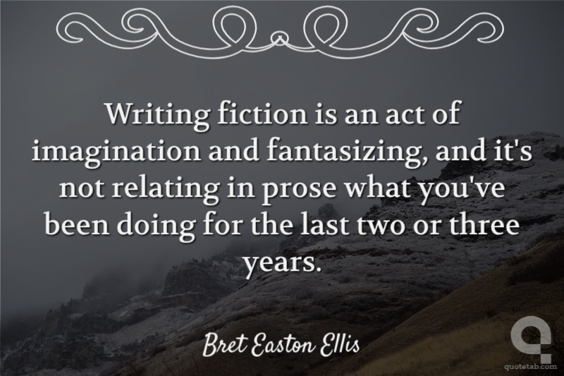 Writing fiction is an act of imagination and fantasizing, and it's not relating in prose what you've been doing for the last two or three years.