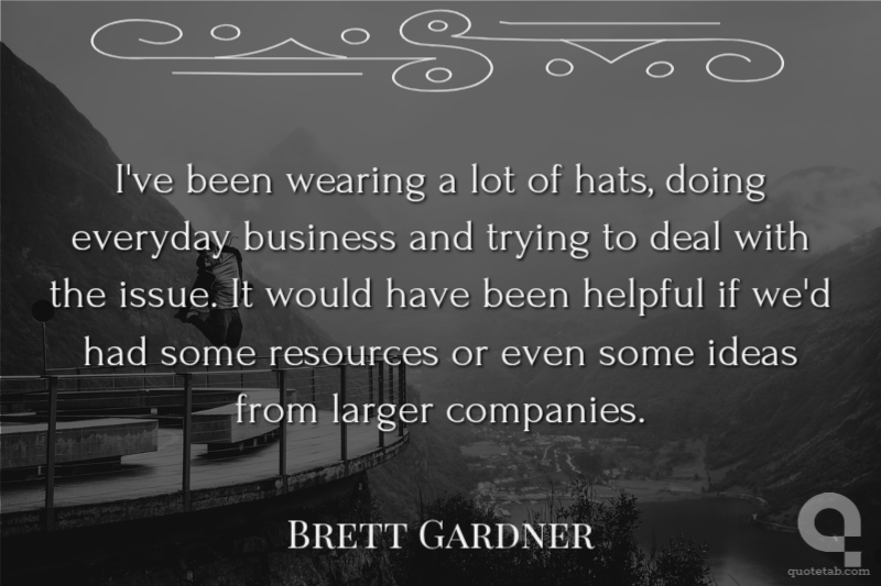 I've been wearing a lot of hats, doing everyday business and trying to deal with the issue. It would have been helpful if we'd had some resources or even some ideas from larger companies.