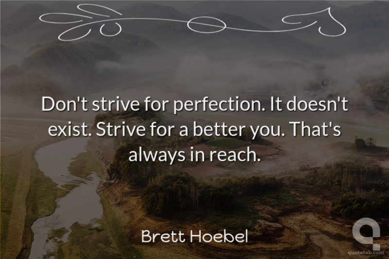 Don't strive for perfection. It doesn't exist. Strive for a better you. That's always in reach.