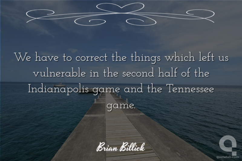 We have to correct the things which left us vulnerable in the second half of the Indianapolis game and the Tennessee game.