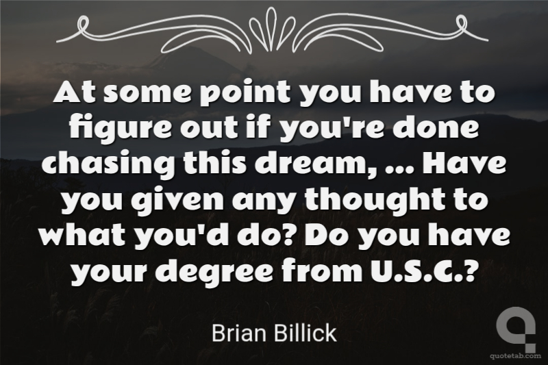 At some point you have to figure out if you're done chasing this dream, ... Have you given any thought to what you'd do? Do you have your degree from U.S.C.?