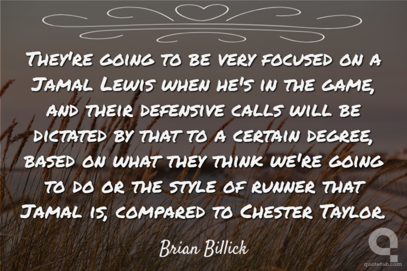 They're going to be very focused on a Jamal Lewis when he's in the game, and their defensive calls will be dictated by that to a certain degree, based on what they think we're going to do or the style of runner that Jamal is, compared to Chester Taylor.