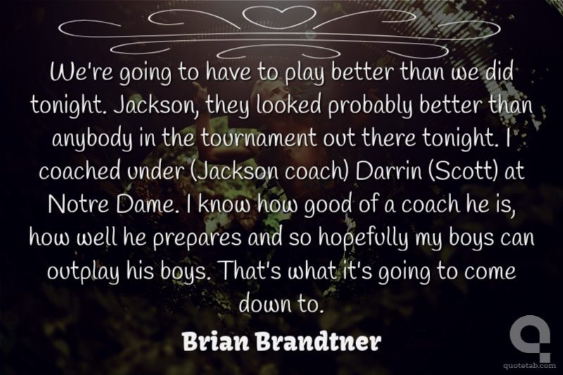 We're going to have to play better than we did tonight. Jackson, they looked probably better than anybody in the tournament out there tonight. I coached under (Jackson coach) Darrin (Scott) at Notre Dame. I know how good of a coach he is, how well he prepares and so hopefully my boys can outplay his boys. That's what it's going to come down to.
