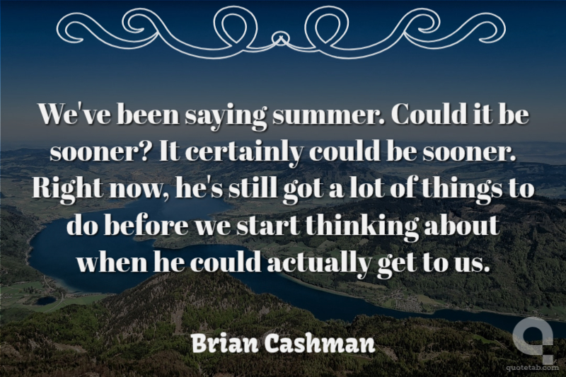 We've been saying summer. Could it be sooner? It certainly could be sooner. Right now, he's still got a lot of things to do before we start thinking about when he could actually get to us.