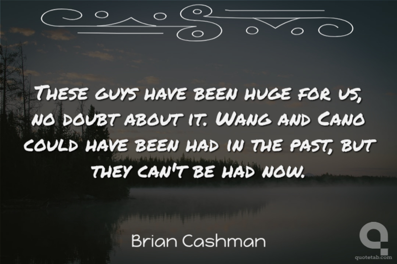 These guys have been huge for us, no doubt about it. Wang and Cano could have been had in the past, but they can't be had now.