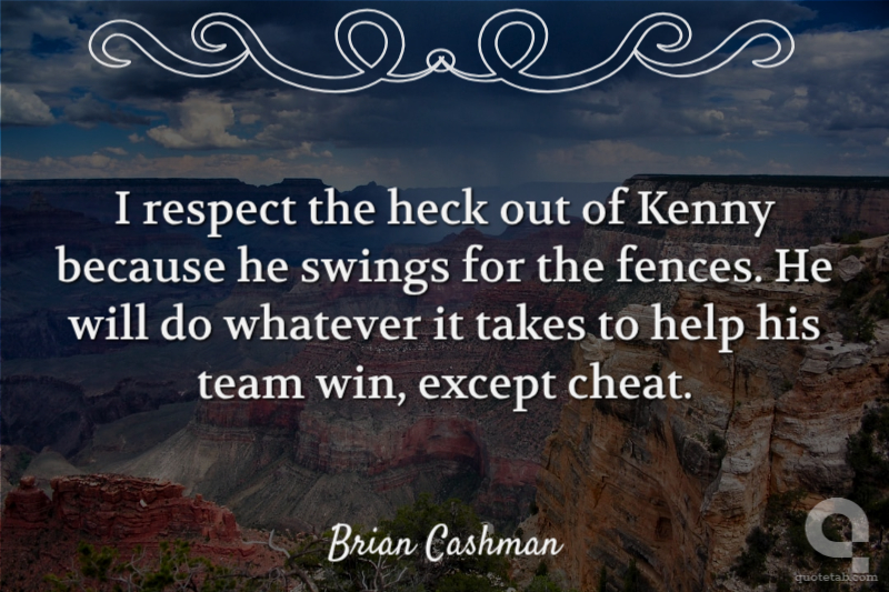 I respect the heck out of Kenny because he swings for the fences. He will do whatever it takes to help his team win, except cheat.