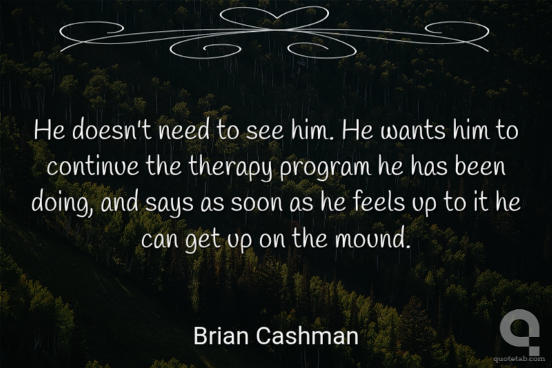 He doesn't need to see him. He wants him to continue the therapy program he has been doing, and says as soon as he feels up to it he can get up on the mound.