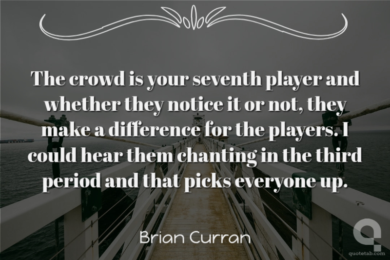 The crowd is your seventh player and whether they notice it or not, they make a difference for the players. I could hear them chanting in the third period and that picks everyone up.