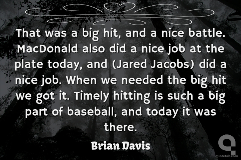 That was a big hit, and a nice battle. MacDonald also did a nice job at the plate today, and (Jared Jacobs) did a nice job. When we needed the big hit we got it. Timely hitting is such a big part of baseball, and today it was there.