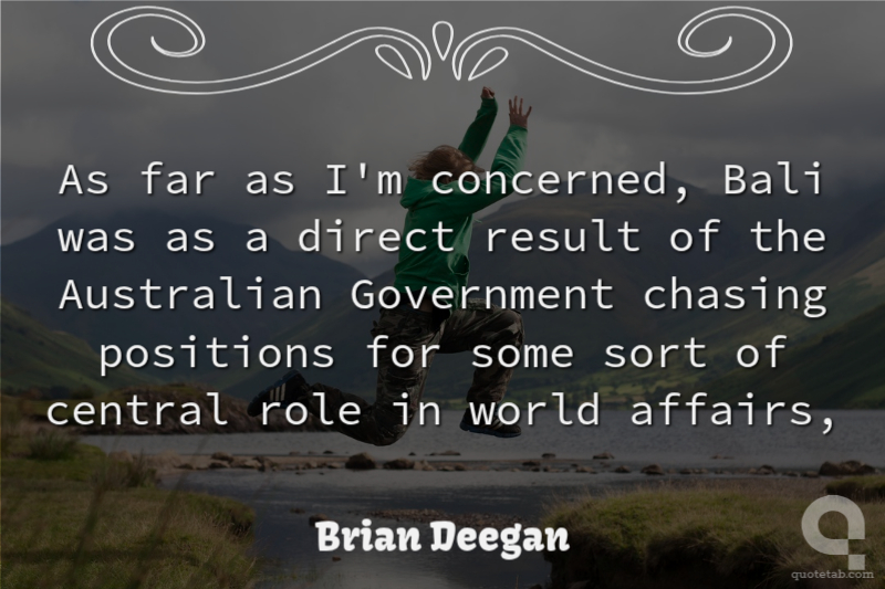 As far as I'm concerned, Bali was as a direct result of the Australian Government chasing positions for some sort of central role in world affairs,