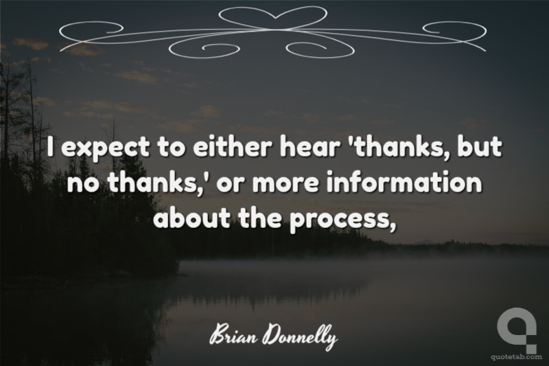 I expect to either hear 'thanks, but no thanks,' or more information about the process,