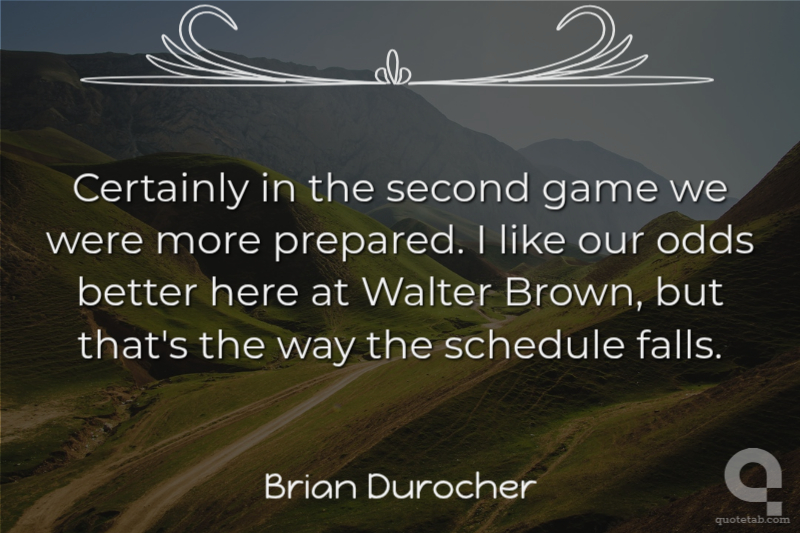 Certainly in the second game we were more prepared. I like our odds better here at Walter Brown, but that's the way the schedule falls.