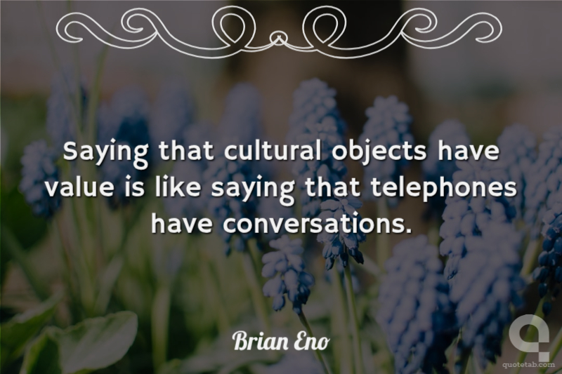 Saying that cultural objects have value is like saying that telephones have conversations.