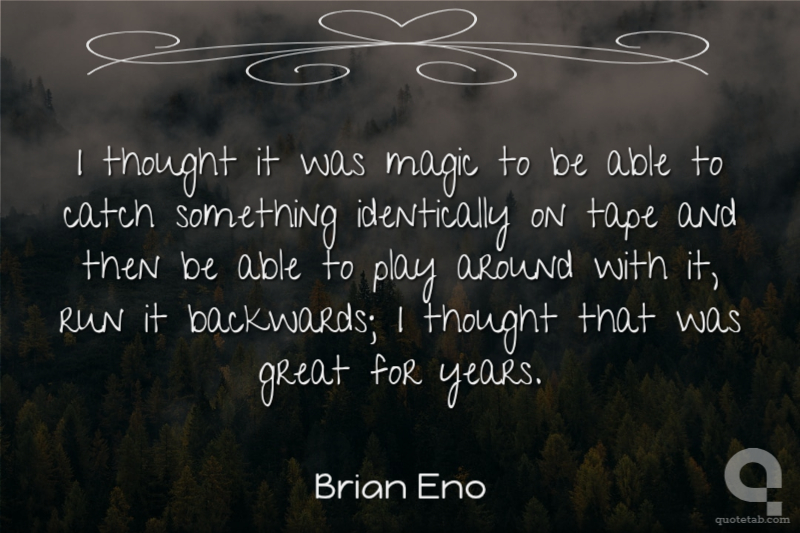 I thought it was magic to be able to catch something identically on tape and then be able to play around with it, run it backwards; I thought that was great for years.