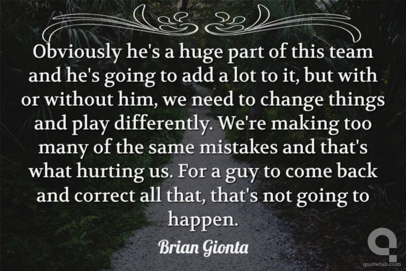 Obviously he's a huge part of this team and he's going to add a lot to it, but with or without him, we need to change things and play differently. We're making too many of the same mistakes and that's what hurting us. For a guy to come back and correct all that, that's not going to happen.